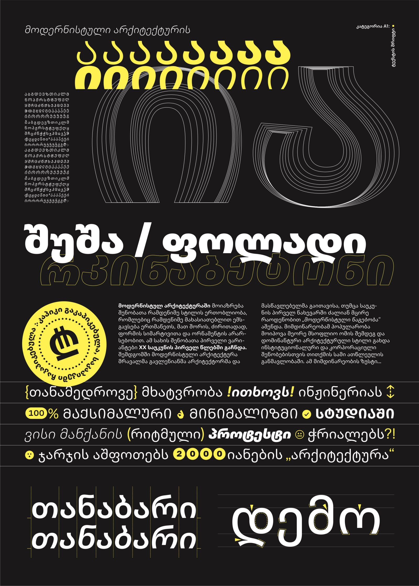 Adapter Georgian is an adaptation derived from an existing multiscript text type family, with a specific emphasis on ergonomics, even rhythm, and enhanced readability. Noteworthy features, such as accentuated elements, generous spacing, overall openness, and slightly squared counters, are meticulously crafted to excel at lower resolutions, prioritizing a gratifying reading experience. With Georgian-specific proportions, the typeface features extended ascenders and descenders, complemented by strategically placed ink traps, ensuring a seamless blend with other scripts in the type family. Tailored for extended reading in both print and digital mediums, this Georgian text typeface is adept at tackling contemporary challenges in Georgian typography. lowercase Mkhedruli letters and capital Mtavruli forms. Beyond serving the Georgian language, these fonts provide support for other Kartvelian languages, including Laz, Mingrelian, and Svan.