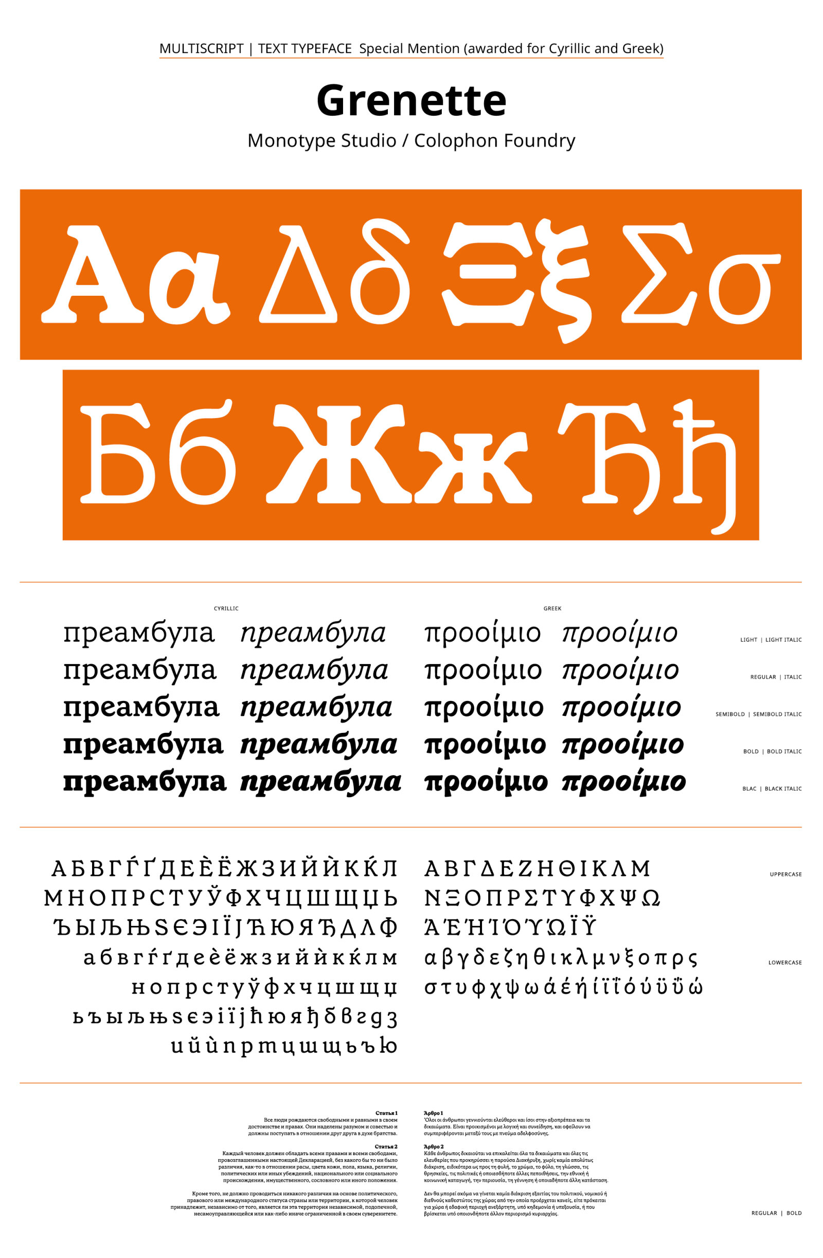 Combining influences from Windsor (from Stephenson Blake & Co’s Wood Letter Specimen, 1915) and Richmond Old Style (from DeLittle’s Wood Type Specimens, 1966). This typeface’s imposing serifs contrast with the serif-less interiors of certain forms such as «n», «h» and «v» which allows its personality to lie within intentional asymmetry and subtle quirks. Certain characteristics evolve through the styles (Light through Black) as weight increases; from the Serifs being round and bulged in the Light, therefore feeling more delicate; to square and sturdy in the Black weight, feeling more robust, giving it a distinct appearance across all styles.