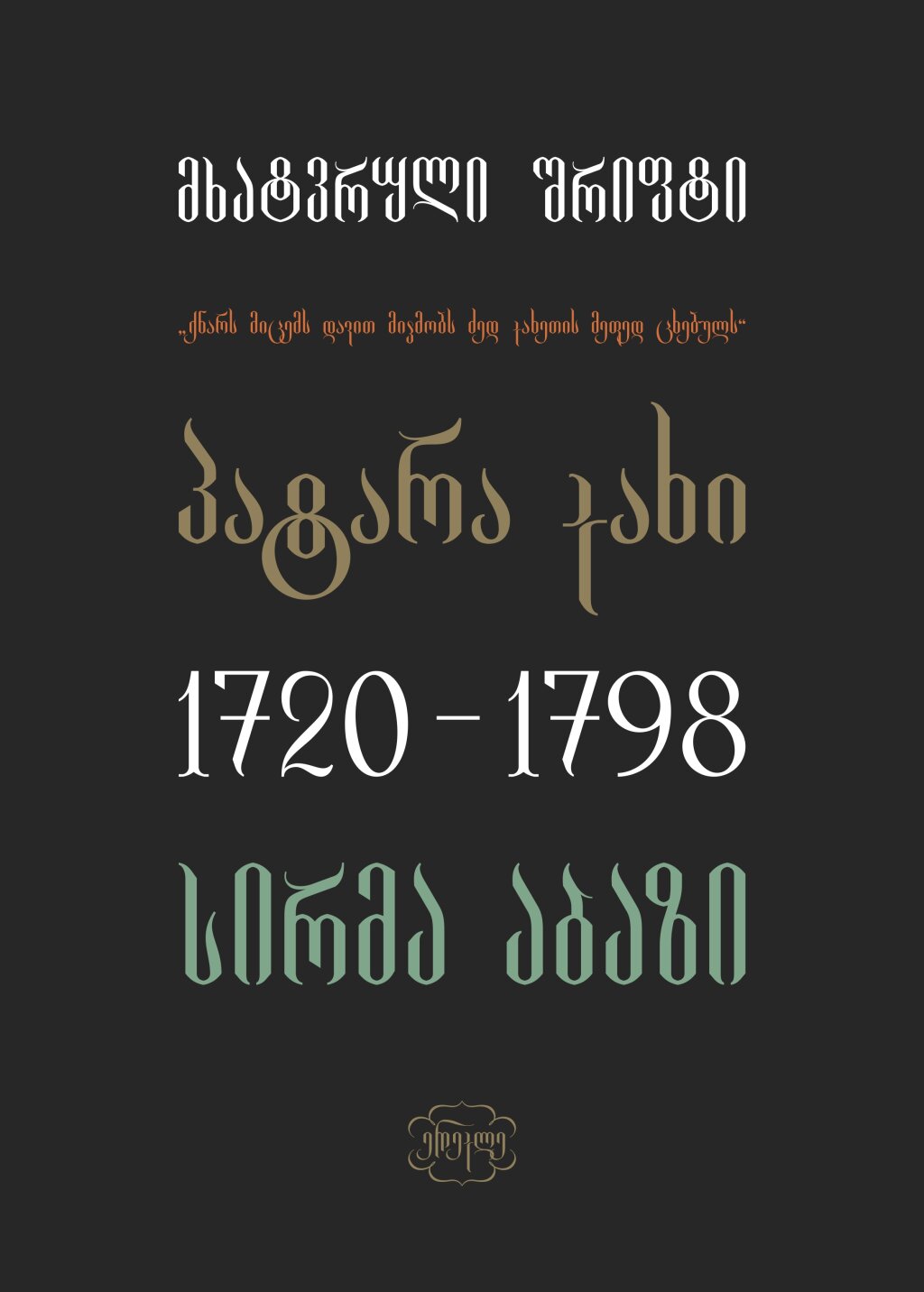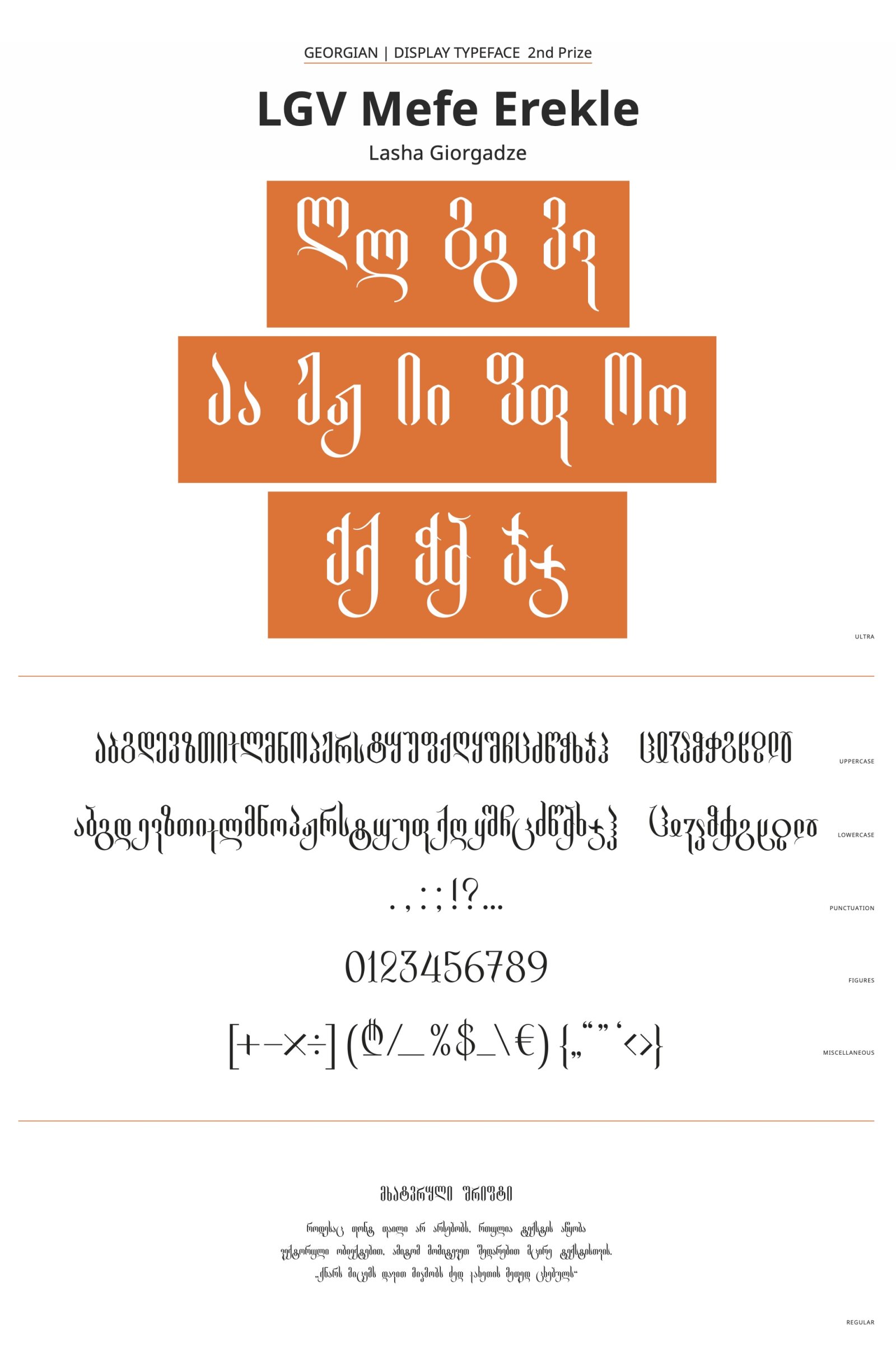 The font draws inspiration from a classic Georgian sword, illustrated within the symbol "K". Rooted in historical traditions, it captures the essence of Georgian culture and its rich heritage. With both uppercase and lowercase characters, as well as authentic old Georgian symbols and alternative letters, it’s a comprehensive toolkit for design projects.