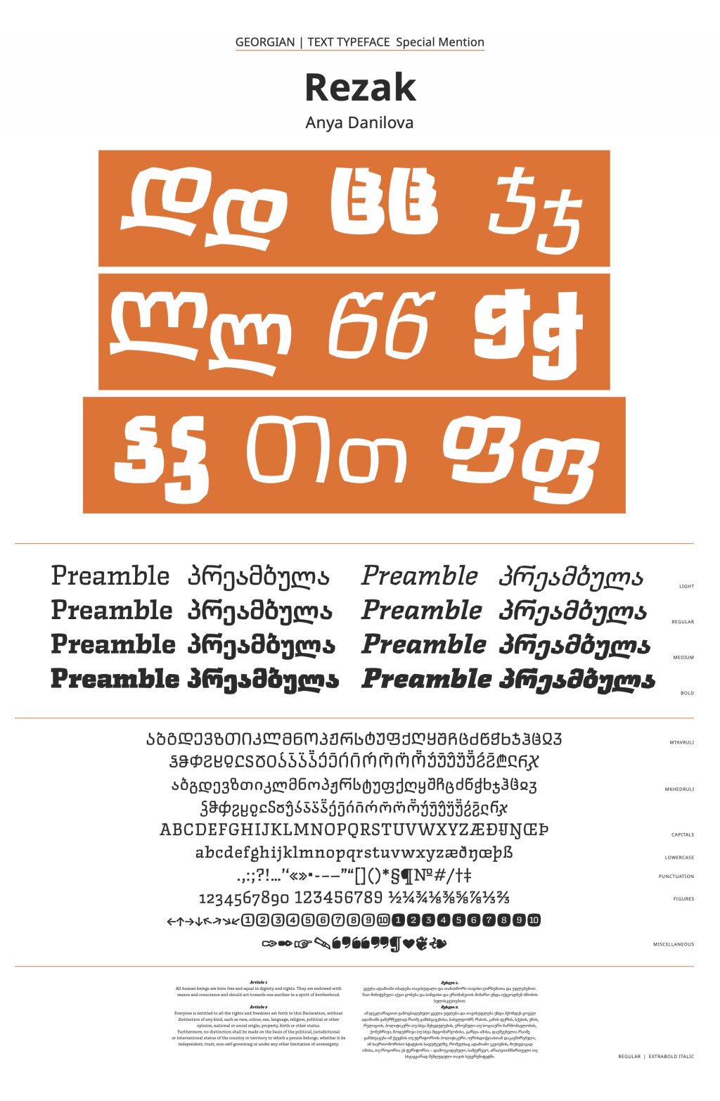 Due to the jury’s decision, this typeface has been moved from the B1 Georgian-Latin Text Typefaces to the A1 Georgian Text Typefaces Category.
